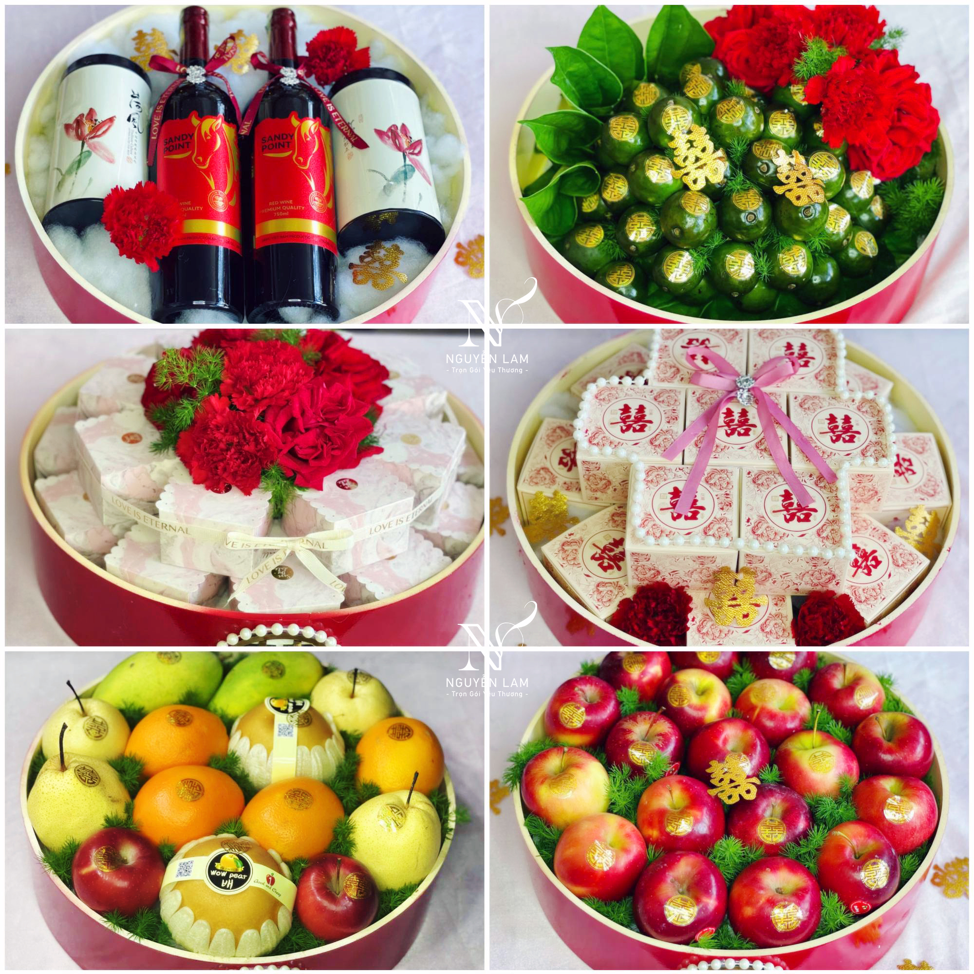 Mâm Quả Cưới Hiện Đại Giá chỉ từ 4.900.000 vnđ đến 6.900.000 vnđ Quý khách có thể lựa chọn tùy thích và điều chỉnh theo ý thích cho mâm quả: 1. Trà + rượu 2. Phụng trên trầu cau 3. Bánh cốm 4. Bánh phu thê 5. Bánh bía 6. Bánh kem 7. Bánh Danisa 8. Ngũ quả 9. Táo 10. Cam 11. Lê hàn 12. Socola 13. Xôi gà 14. Bia, nước ngọt,... ................................... ( khay rượu :1 bình, 1 chai rượu voka, 2 ly, 6 miếng trầu tem, 1 phong bì ) Xem thêm