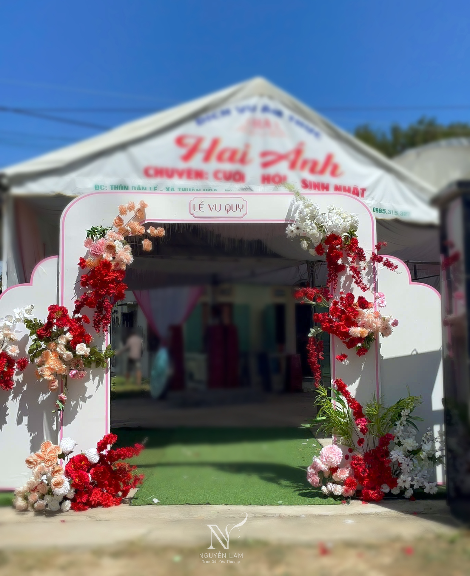 1. Cổng hoa lụa cao cấp, bảng vu quy/tân hôn/đám hỏi
