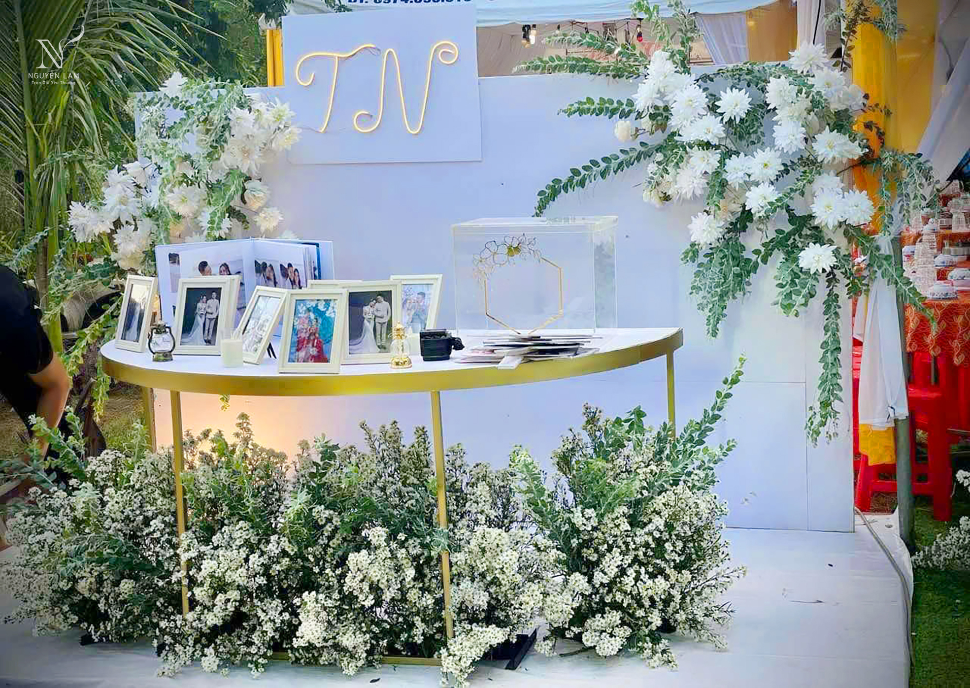 Không chỉ dừng lại ở khu vực tiệc chính, chúng tôi hiểu rằng nghi thức truyền thống cũng vô cùng quan trọng. Dịch vụ của chúng tôi còn bao gồm cả trang trí gia tiên trọn gói, với phong cách vừa giữ được nét truyền thống ấm cúng, vừa hài hòa với không gian tiệc hiện đại. Đặc biệt, chúng tôi chuyên cung cấp dịch vụ trang trí gia tiên Phan Thiết và khu vực lân cận, đảm bảo mọi chi tiết đều hoàn hảo và đồng bộ. Hãy cùng khám phá hành trình kiến tạo đám cưới trong mơ của bạn tại thiên đường biển Mũi Né cùng chúng tôi!