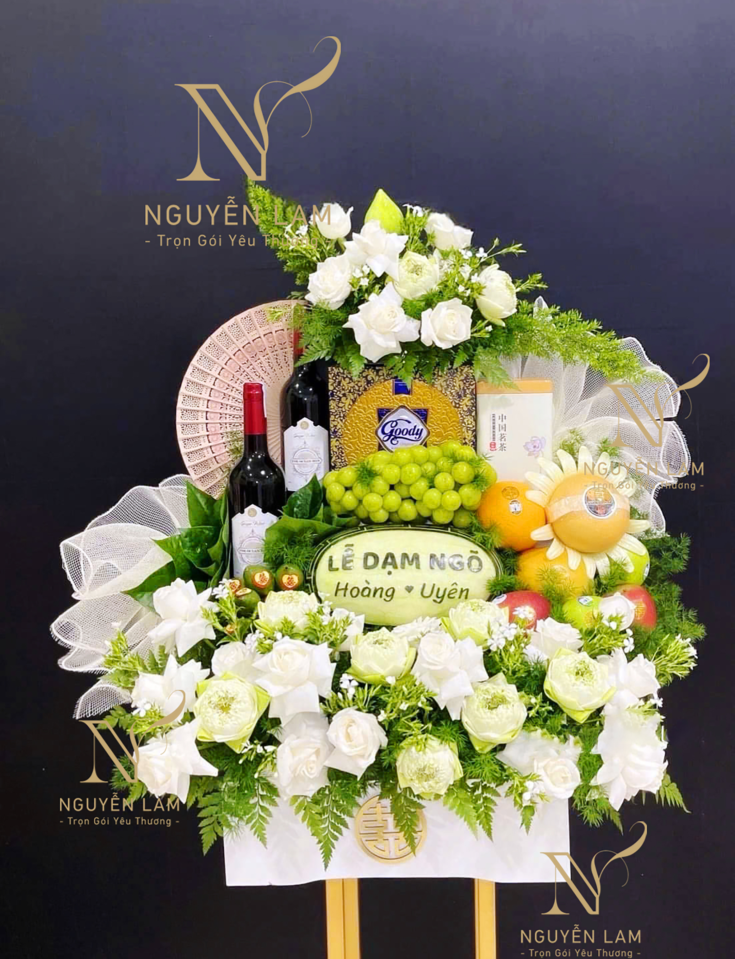 Mâm quả dạm ngỏ Nguyễn Lam luôn cập nhật và cung cấp quả dạm ngỏ hiện đại nhất cho các cặp đôi .Thông thường, mâm quả dạm ngỏ thường đơn giản hơn so với mâm quả ăn hỏi hay mâm quả cưới. Nó thường bao gồm: