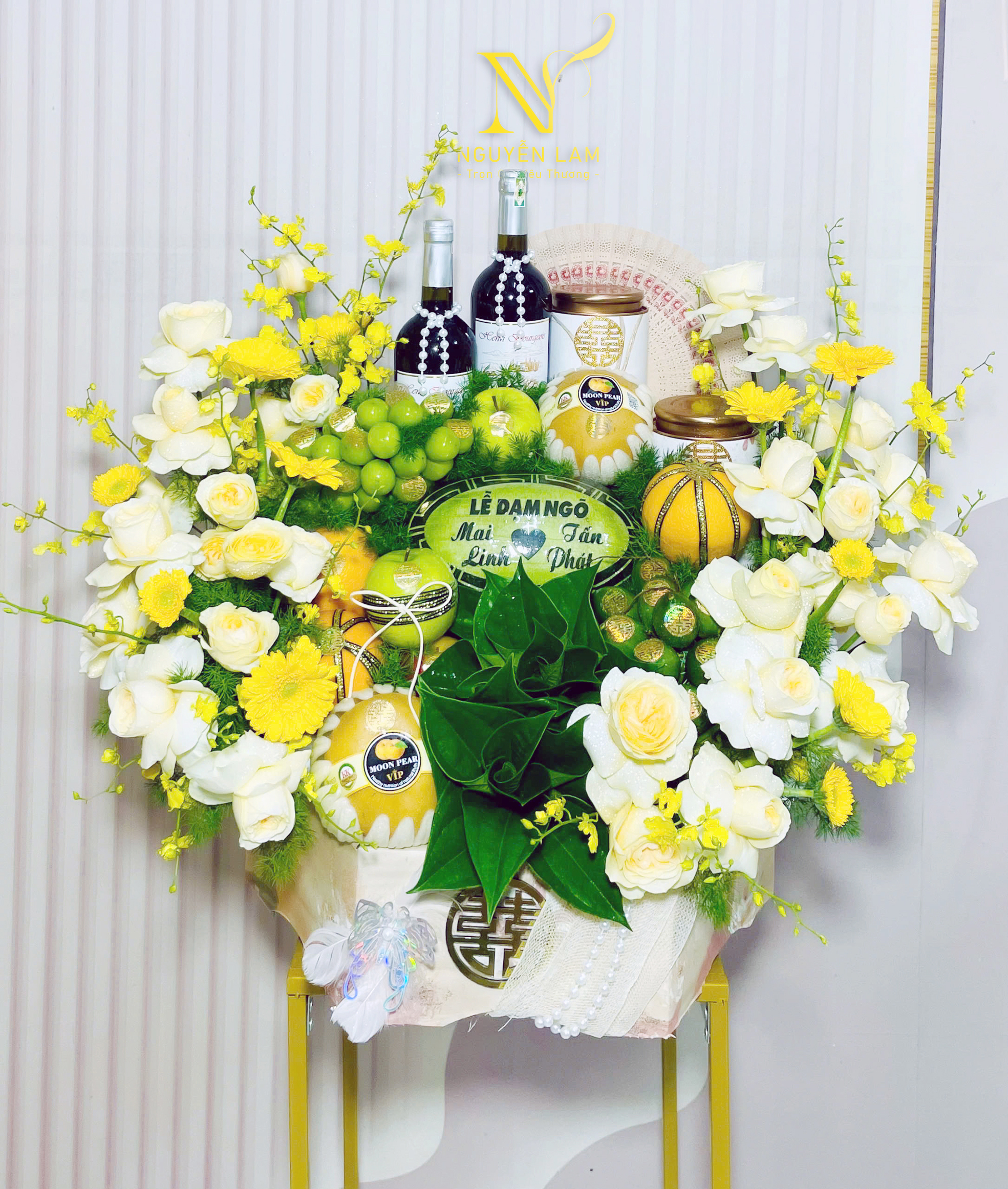 Mâm quả đẹp mắt và sang trọng: Mâm quả cưới được thiết kế và trang trí bởi đội ngũ nhân viên chuyên nghiệp, đảm bảo tính thẩm mỹ cao và thể hiện sự chu đáo của gia đình hai bên.