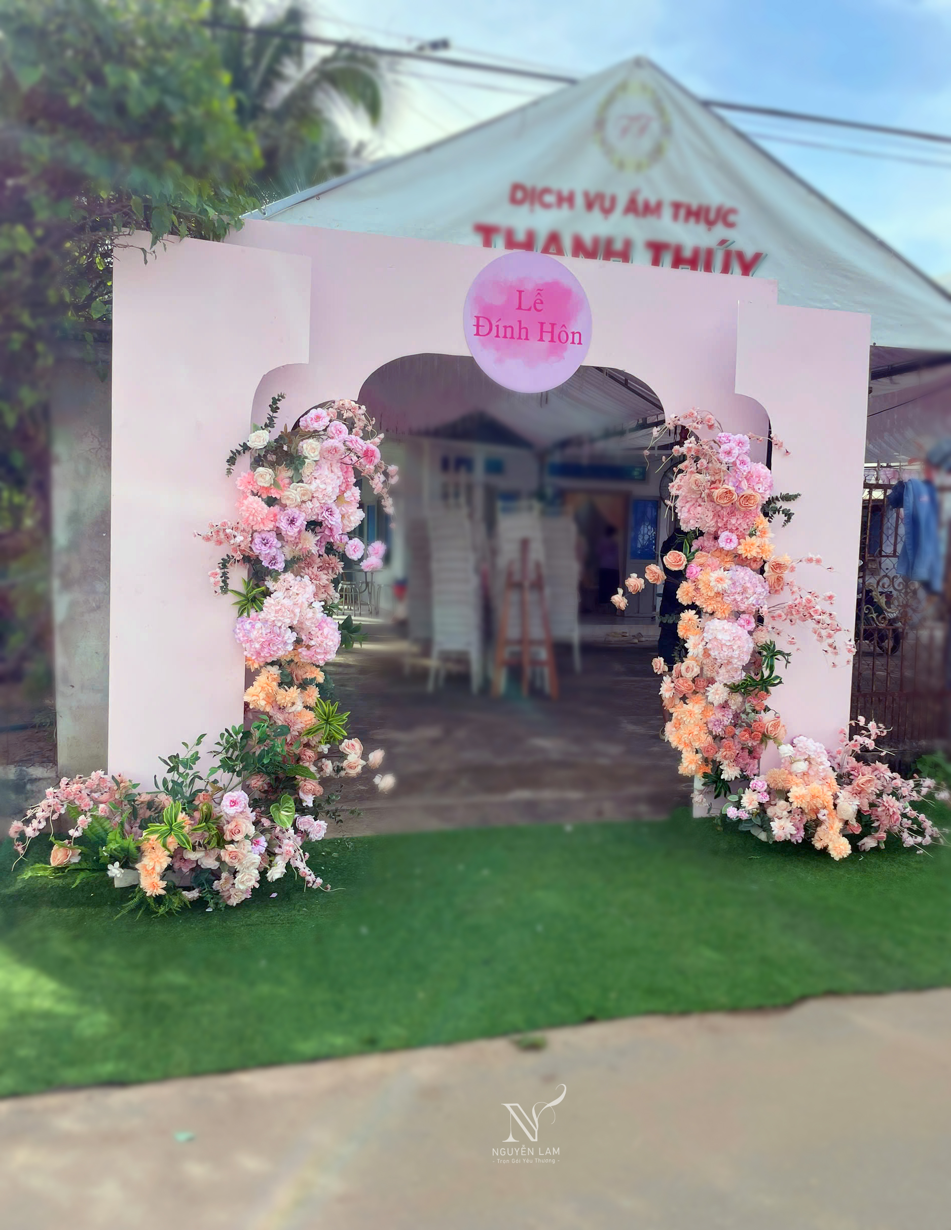 1. Cổng hoa lụa cao cấp, bảng vu quy/tân hôn/đám hỏi