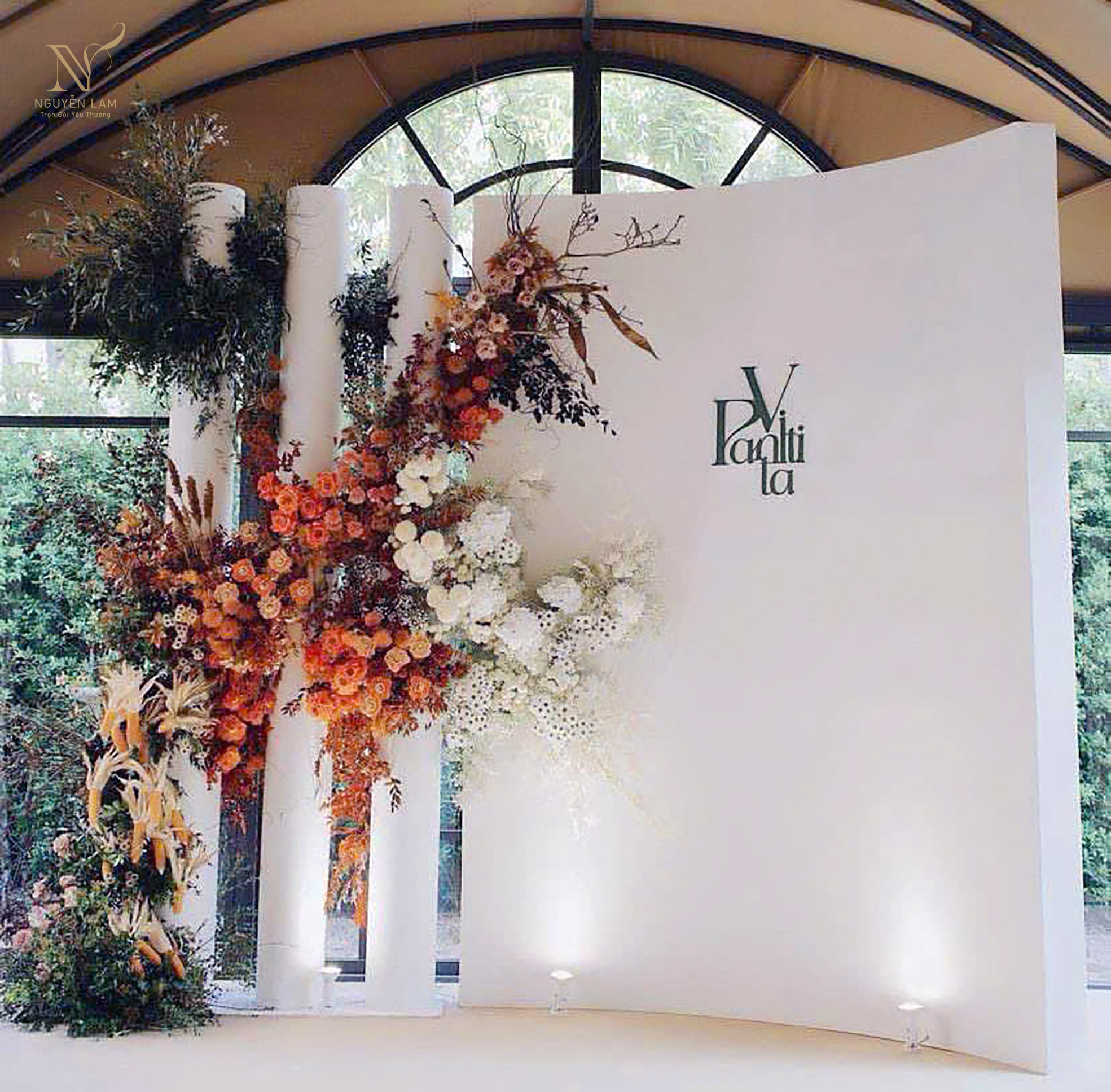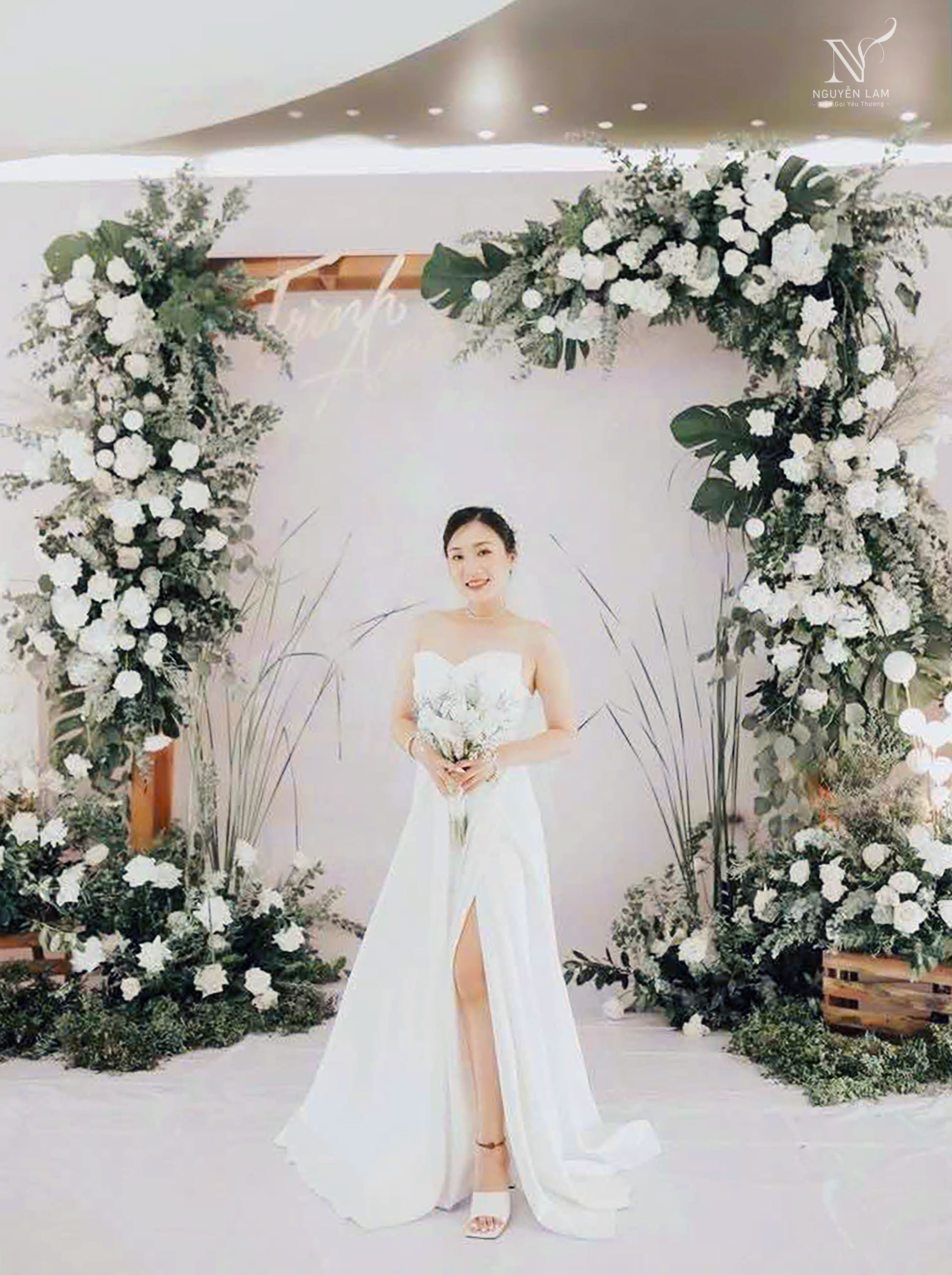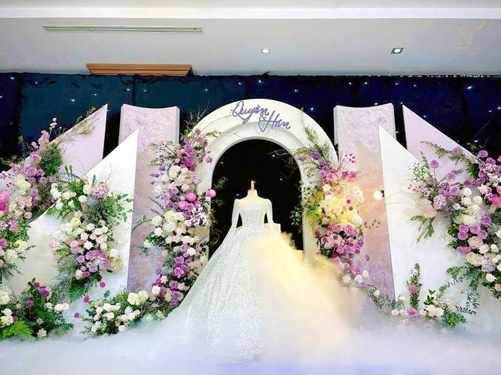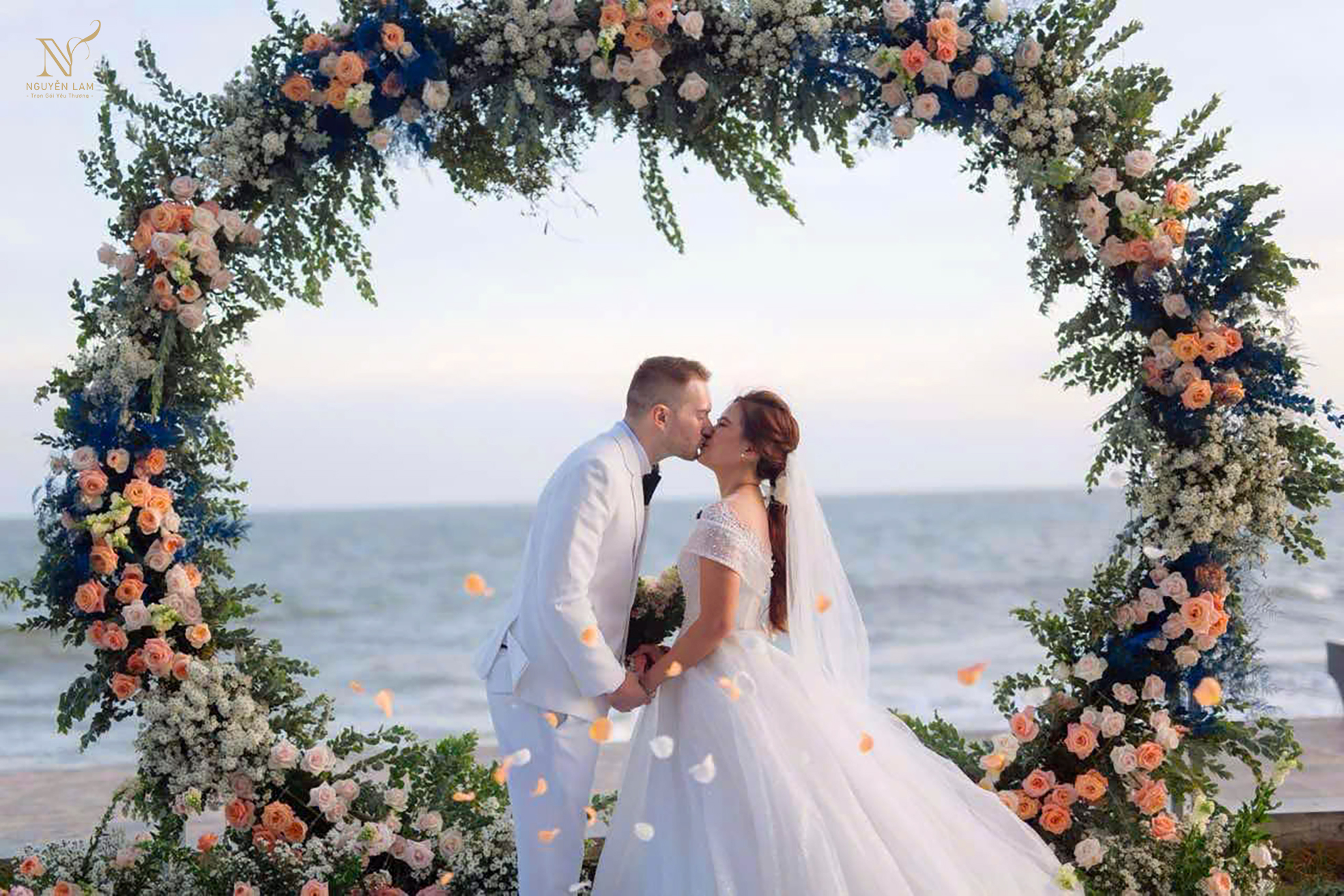 Cổng hoa (Wedding Arch): Điểm nhấn trung tâm của buổi lễ.