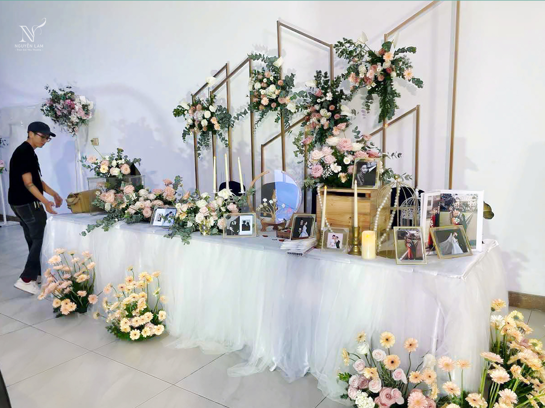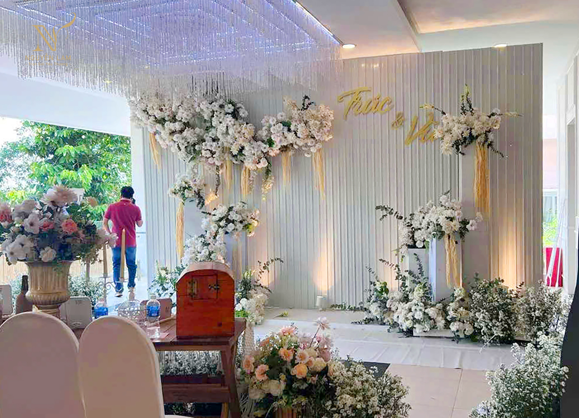 Không chỉ dừng lại ở khu vực tiệc chính, chúng tôi hiểu rằng nghi thức truyền thống cũng vô cùng quan trọng. Dịch vụ của chúng tôi còn bao gồm cả trang trí gia tiên trọn gói, với phong cách vừa giữ được nét truyền thống ấm cúng, vừa hài hòa với không gian tiệc hiện đại. Đặc biệt, chúng tôi chuyên cung cấp dịch vụ trang trí gia tiên Phan Thiết và khu vực lân cận, đảm bảo mọi chi tiết đều hoàn hảo và đồng bộ. Hãy cùng khám phá hành trình kiến tạo đám cưới trong mơ của bạn tại thiên đường biển Mũi Né cùng chúng tôi!